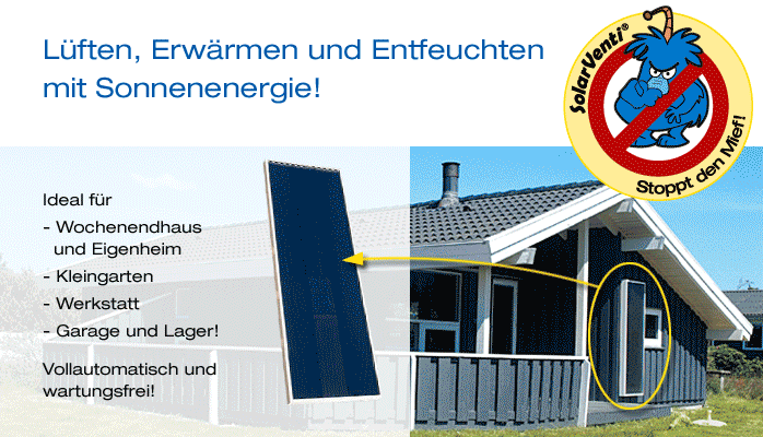 Sie sind längere Zeit nicht zuhause oder haben in Ihrem Haus Räume, in denen sich schnell die Feuchtigkeit sammelt, können aber nicht dauerhaft gut lüften? Dann ist SolarVenti die Lösung Ihrer Probleme und der Garant für ein gesundes Raumklima.....